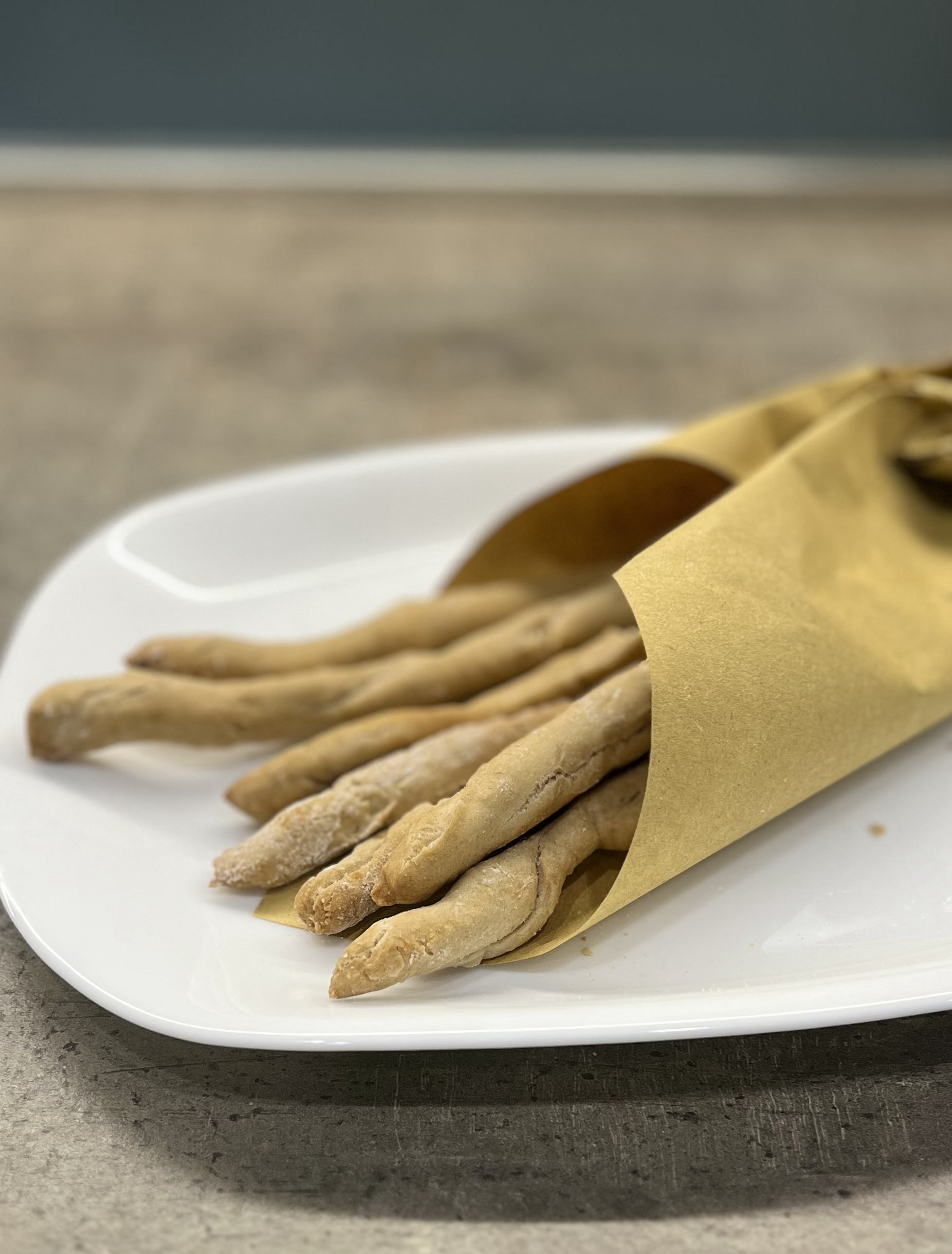 These delicious breadsticks made with extra virgin olive oil present an innovative solution to offer your guests. They have an even more special flavor because they are enriched with the unique aroma of black garlic. This ingredient gives them a delicate and light taste, making them a perfect choice as a substitute for bread or as a snack to serve at a friendly gathering with spreadable cheeses or cold cuts.